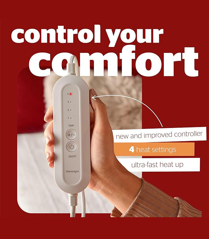 The Silentnight electric blanket warms up fairly quickly and provides gentle, even heat. The three heat settings are easy to adjust, and the blanket feels comfortable under the sheet. It’s been helpful during colder nights. The controller is simple and clear to use.