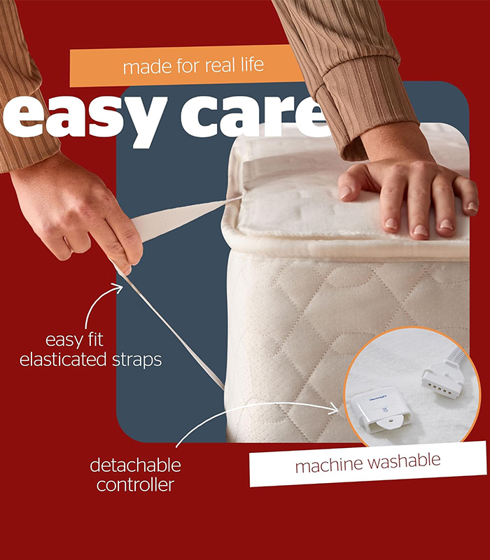 It heats up quickly and offers three adjustable heat settings, so you can choose your ideal temperature. The built-in overheat protection system gives total peace of mind, while easy-fit straps keep the blanket secure and flat on your mattress for safe, even heating.